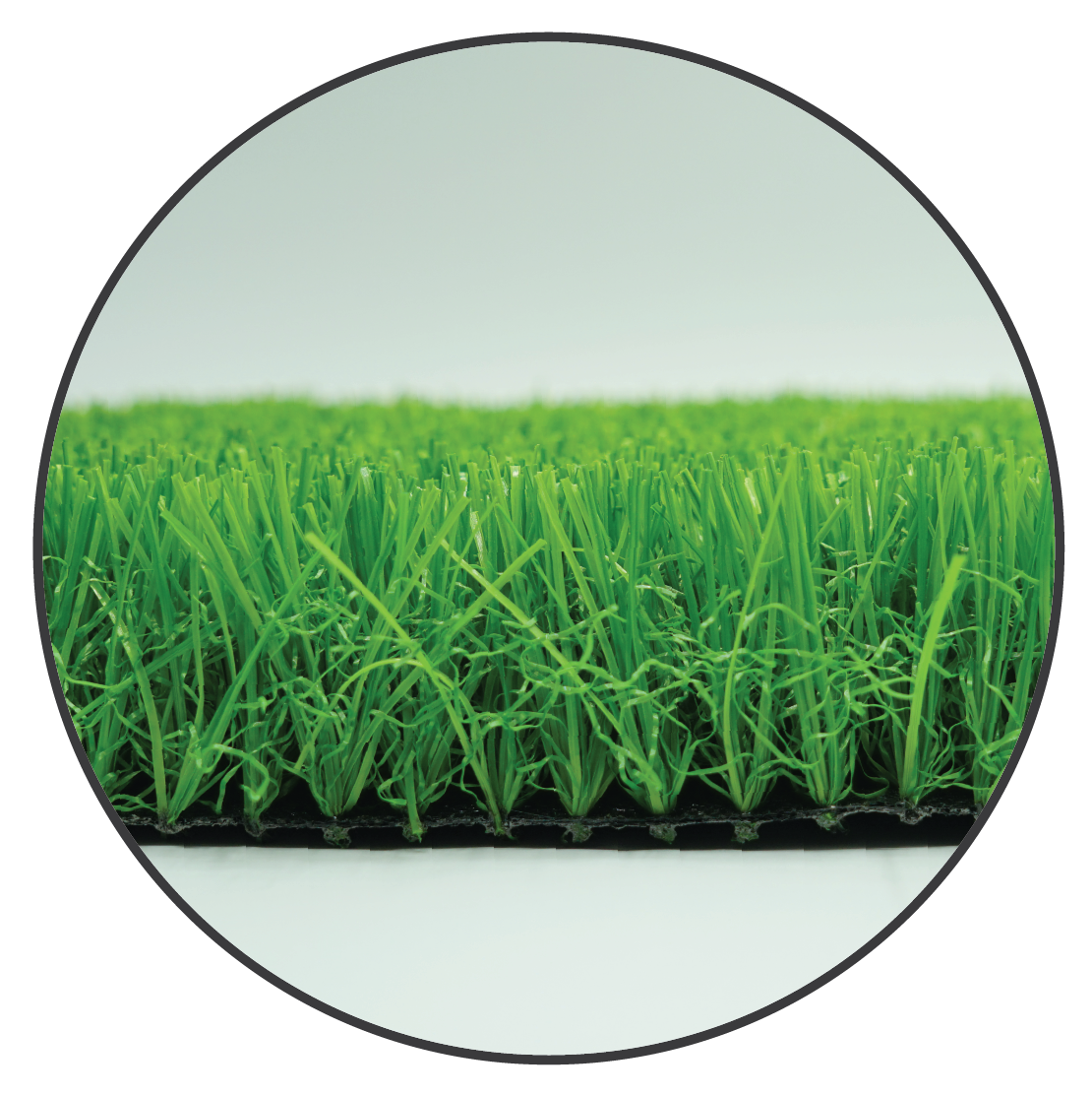 ความยาวหญ้าไม่สั้นไม่ยาวกำลังดี มีความนุ่มเล็กน้อย เหมาะสำหรับตกแต่ง